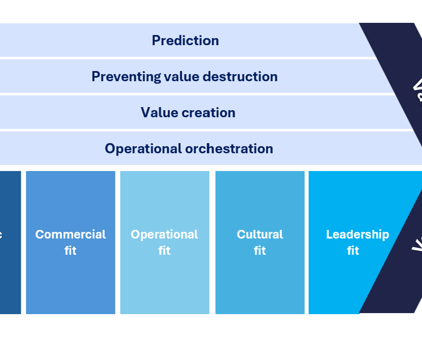 miryō is pioneering a new M&A integration value chain based on the need to achieve five quantifiable fits. The integration capabilities you need to unlock value are operational orchestration, enhanced value creation, the ability to pre-empt value destruction and predictive powers.